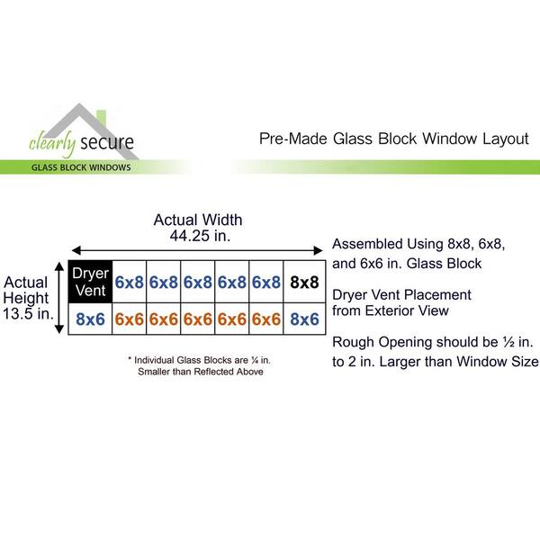 44.25 in. x 13.5 in. x 3.125 in. Frameless Wave Pattern Glass Block Window with Dryer Vent