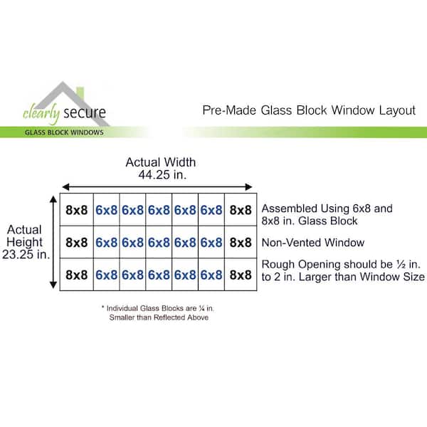 44.25 in. x 23.25 in. x 3.125 in. Frameless Wave Pattern Non-Vented Glass Block Window