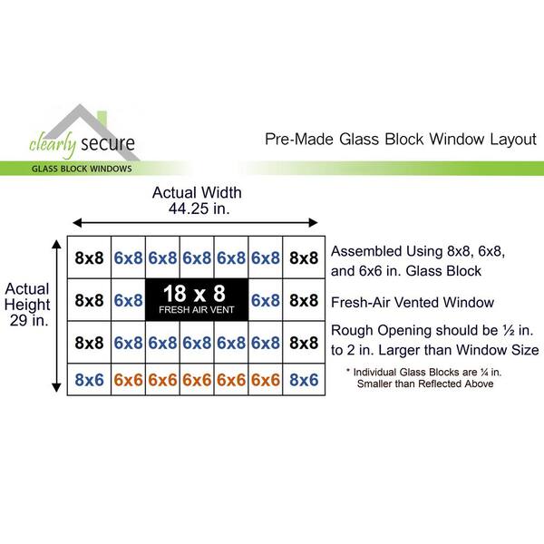 44.25 in. x 29 in. x 3.125 in. Frameless Ice Pattern Vented Glass Block Window