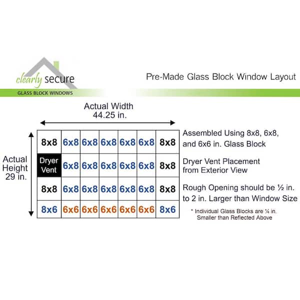 44.25 in. x 29 in. x 3.125 in. Frameless Wave Pattern Glass Block Window with Dryer Vent