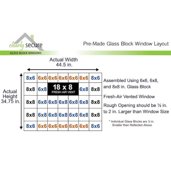 44.25 in. x 34.75 in. x 3.125 in. Frameless Ice Pattern Vented Glass Block Window