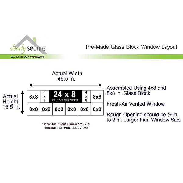 46.5 in. x 15.5 in. x 3.125 in. Frameless Vented Ice Pattern Glass Block Window