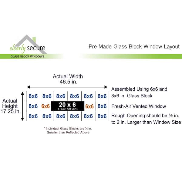46.5 in. x 17.25 in. x 3.125 in. Frameless Ice Pattern Vented Glass Block Window