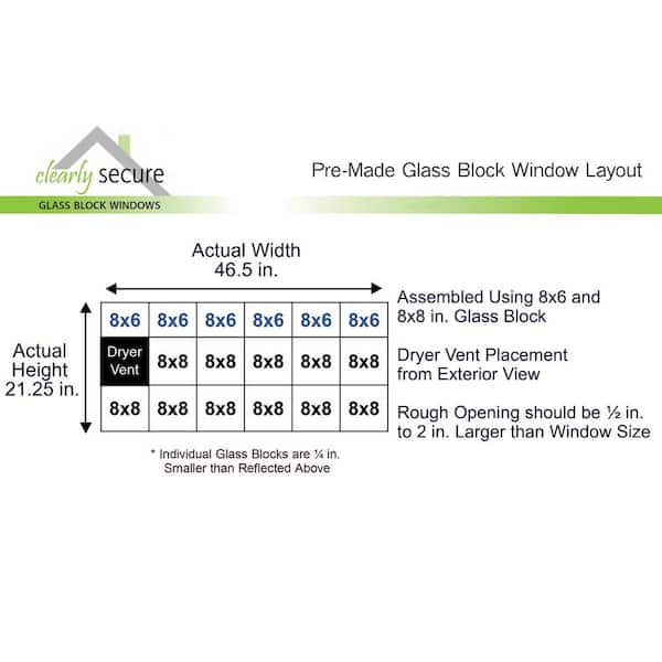 46.5 in. x 21.25 in. x 3.125 in. Frameless Ice Pattern Glass Block Window with Dryer Vent