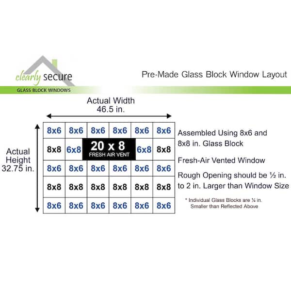 46.5 in. x 32.75 in. x 3.125 in. Frameless Ice Pattern Vented Glass Block Window