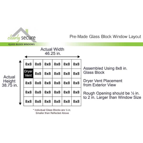 46.5 in. x 38.75 in. x 3.125 in. Frameless Ice Pattern Glass Block Window with Dryer Vent