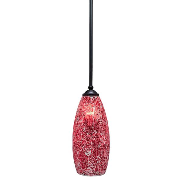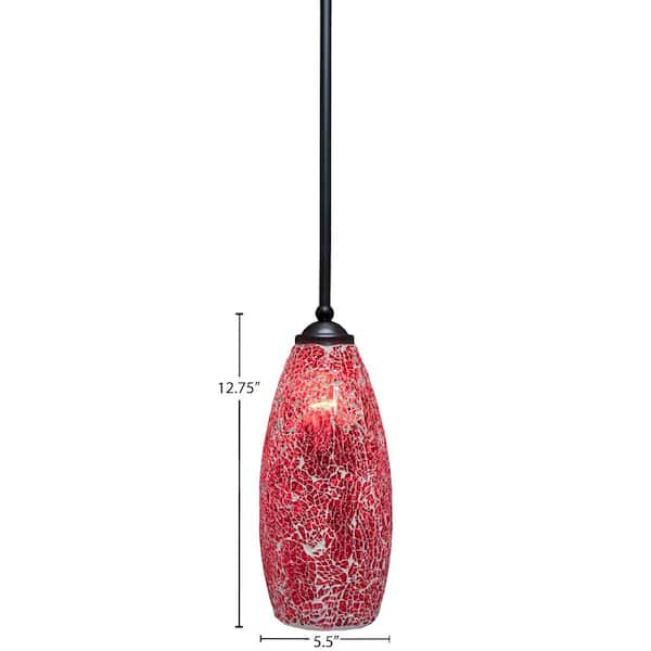 Cleveland 100-Watt 1-Light Black Shaded Pendant Light Mini Pendant with 5.5 in. Red Fusion Glass Shade, No Bulb Included