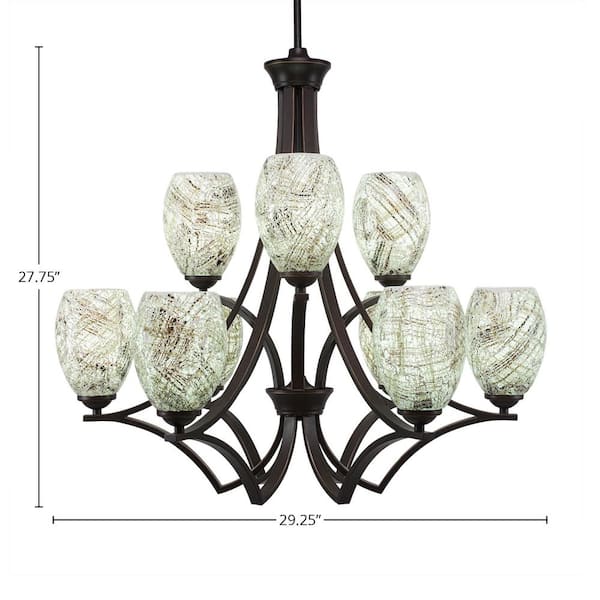 Cleveland 9-Light Dark Granite Cluster Chandelier for Dinning Table with 5 in. Natural Fusion Glass No Blubs Included
