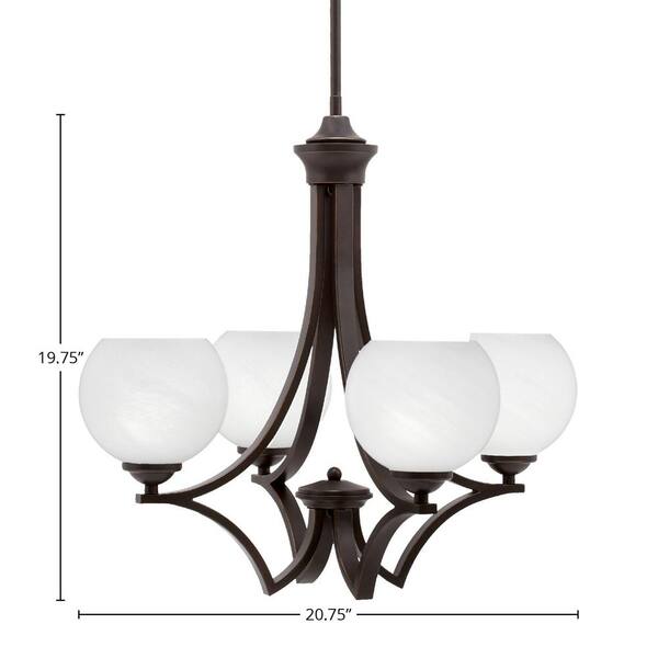 Clevelend 4-Light Dark Granite Round Chandelier with 5.75 in. White Marble Glass Shades, No bulbs included