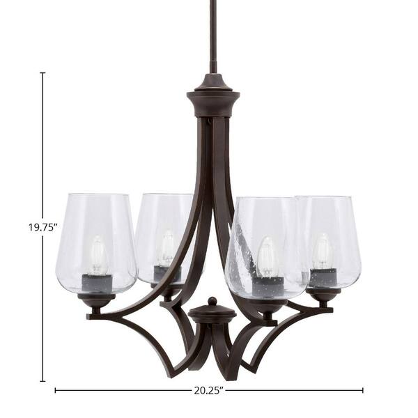 Clevelend 4-Light Dark Granite Round Chandelier with 5 in. Clear Bubble Glass Shades, No bulbs included