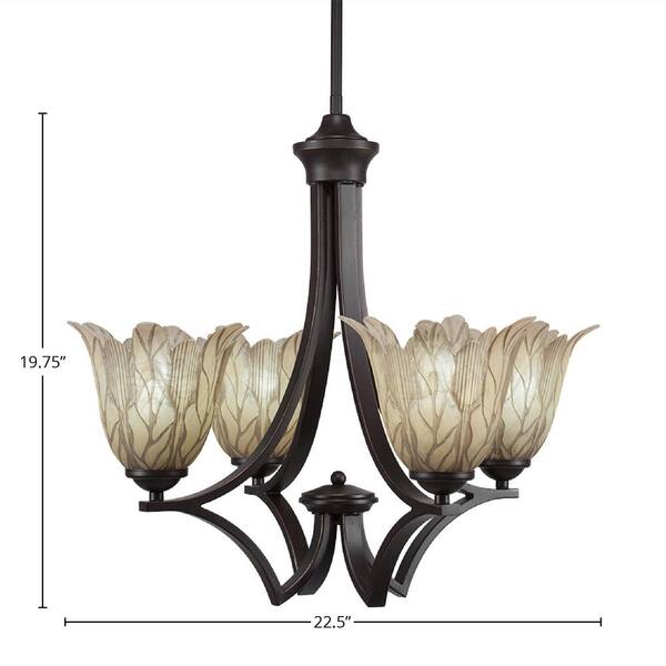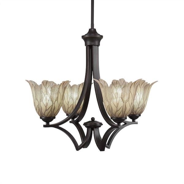Clevelend 4-Light Dark Granite Round Chandelier with 7 in. Vanilla Leaf Glass Shades, No bulbs included