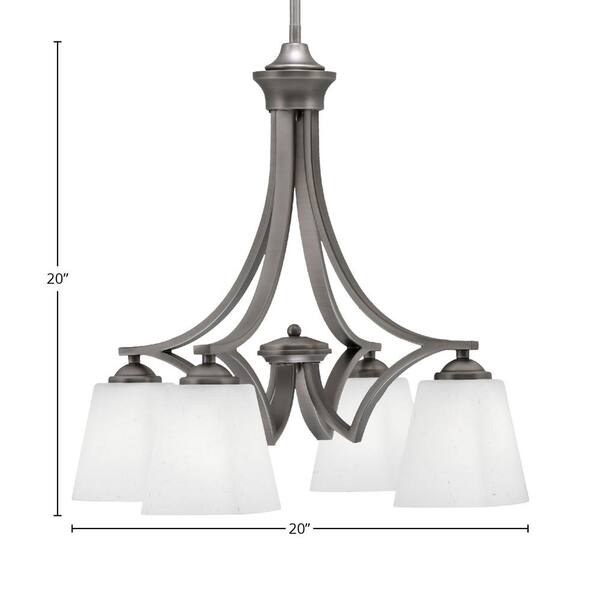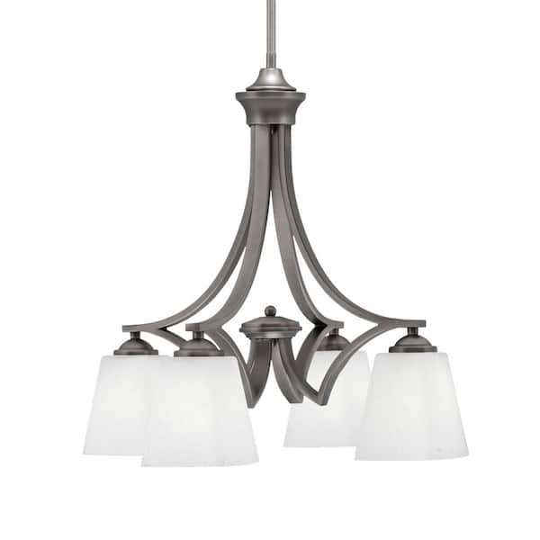 Clevelend 4-Light Graphite Chandelier, Round Chandelier with 4.5 in. Square White Muslin Glass Shades, No bulbs included