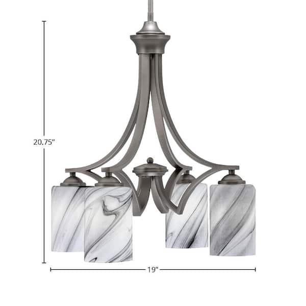 Clevelend 4-Light Graphite Chandelier, Round Chandelier with 4 in. Onyx Swirl Glass Shades, No bulbs included