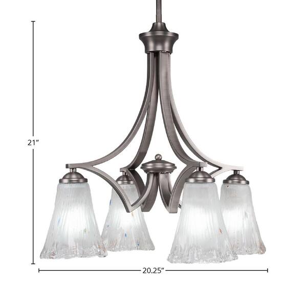 Clevelend 4-Light Graphite Chandelier, Round Chandelier with 5.5" Fluted Frosted Crystal Glass Shades, No bulbs included
