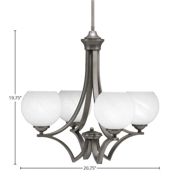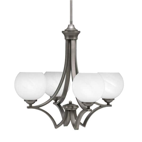 Clevelend 4-Light Graphite Round Chandelier with 5.75 in. White Marble Glass Shades, No bulbs included