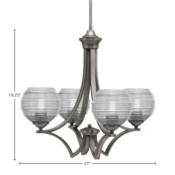 Clevelend 4-Light Graphite Round Chandelier with 6 in. Clear Ribbed Glass Shades, No bulbs included