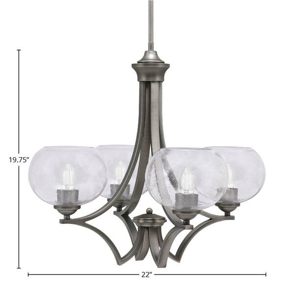 Clevelend 4-Light Graphite Round Chandelier with 7 in. Clear Bubble Glass Shades, No bulbs included