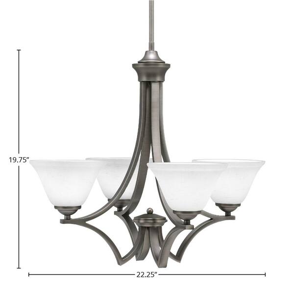 Clevelend 4-Light Graphite Round Chandelier with 7 in. White Muslin Glass Shades, No bulbs included