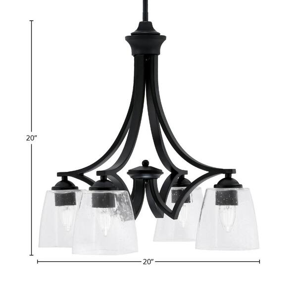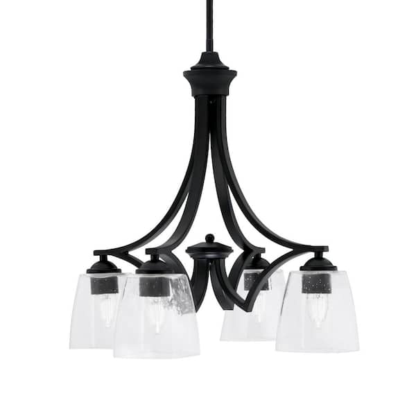 Clevelend 4-Light Matte Black Chandelier, Round Chandelier with 4.5" Square Clear Bubble Glass Shades, No bulbs included