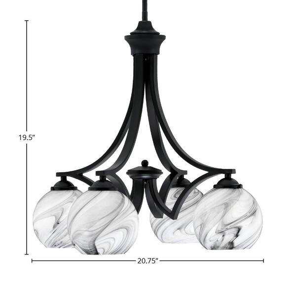 Clevelend 4-Light Matte Black Chandelier, Round Chandelier with 5.75 in. Onyx Swirl Glass Shades, No bulbs included