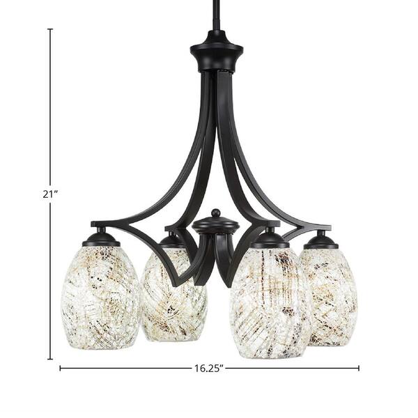 Clevelend 4-Light Matte Black Chandelier, Round Chandelier with 5 in. Natural Fusion Glass Shades, No bulbs included