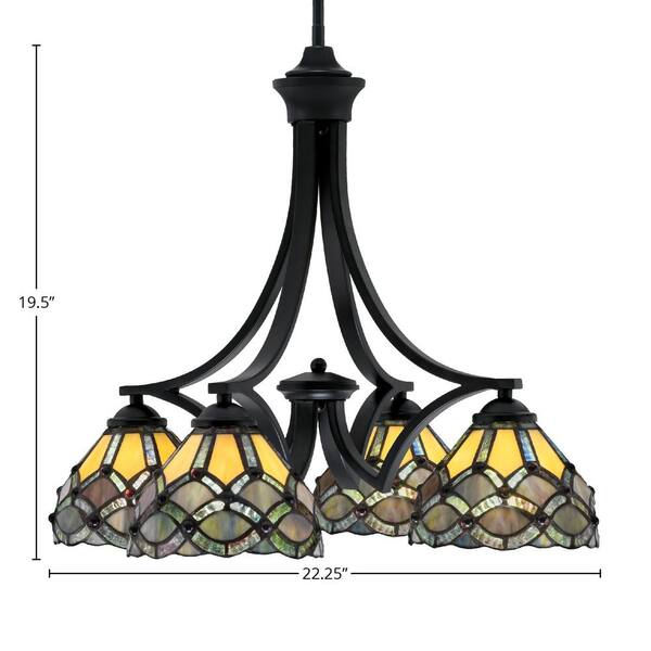 Clevelend 4-Light Matte Black Chandelier, Round Chandelier with 7 in. Merlot Art Glass Glass Shades, No bulbs included