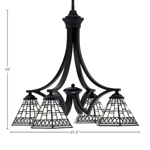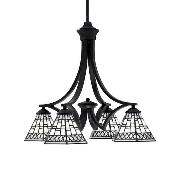 Clevelend 4-Light Matte Black Chandelier, Round Chandelier with 7 in. Pewter Art Glass Glass Shades, No bulbs included