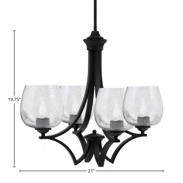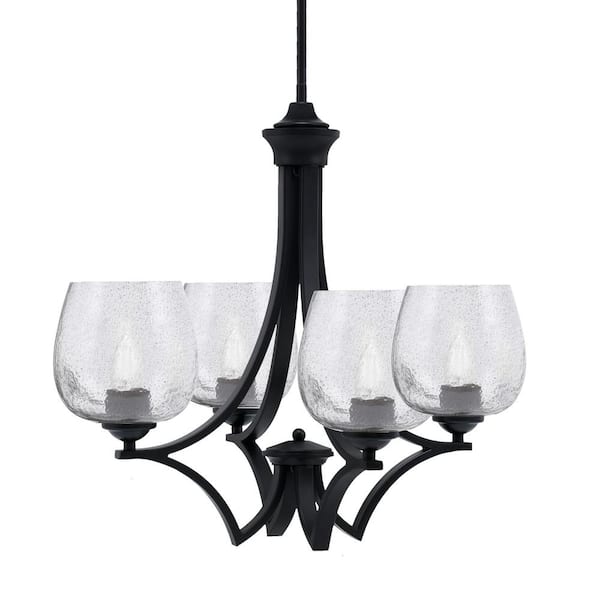Clevelend 4-Light Matte Black Round Chandelier with 6 in. Smoke Bubble Glass Shades, No bulbs included