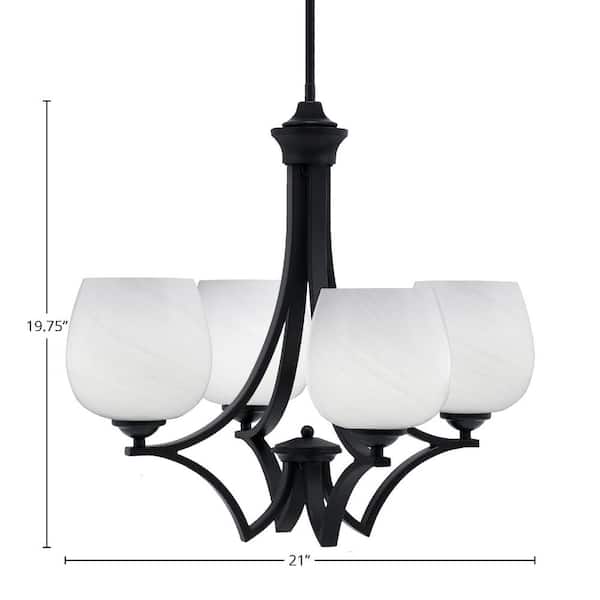 Clevelend 4-Light Matte Black Round Chandelier with 6 in. White Marble Glass Shades, No bulbs included