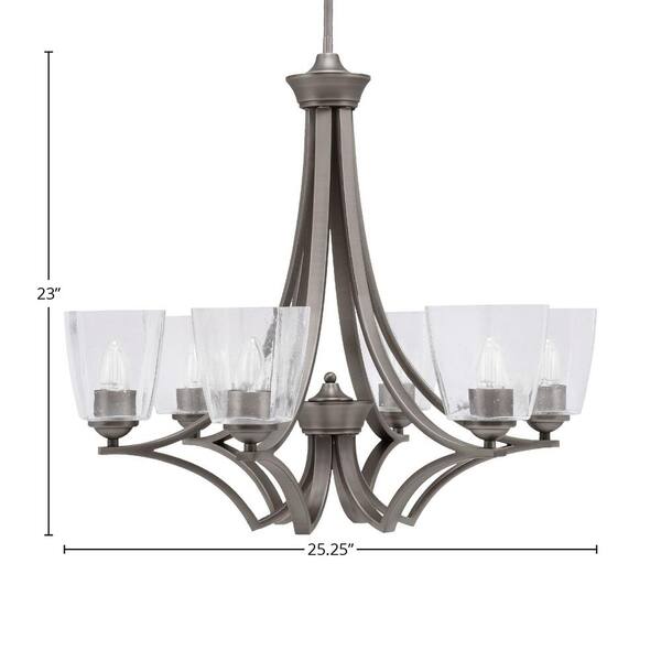 Clevelend 6-Light Graphite Round Chandelier with 4.5 in. Square Clear Bubble Glass Shades, No bulbs included