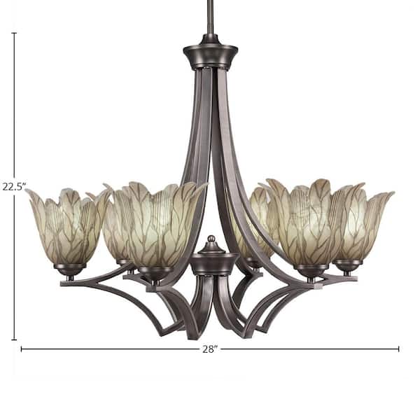 Clevelend 6-Light Graphite Round Chandelier with 7 in. Vanilla Leaf Glass Shades, No bulbs included