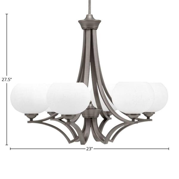 Clevelend 6-Light Graphite Round Chandelier with 7 in. White Muslin Glass Shades, No bulbs included