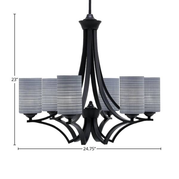 Clevelend 6-Light Matte Black Round Chandelier with 4 in. Gray Matrix Glass Shades, No bulbs included