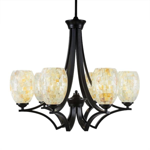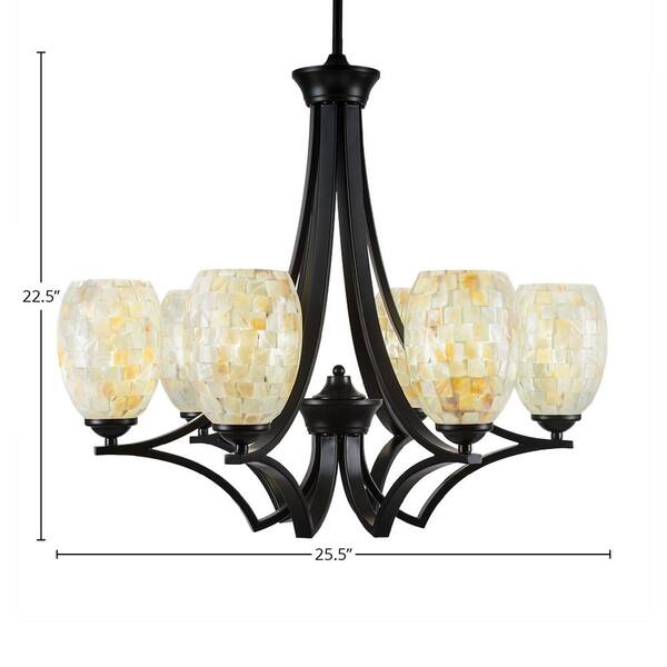 Clevelend 6-Light Matte Black Round Chandelier with 5 in. Ivory Glaze Seashell Glass Shades, No bulbs included