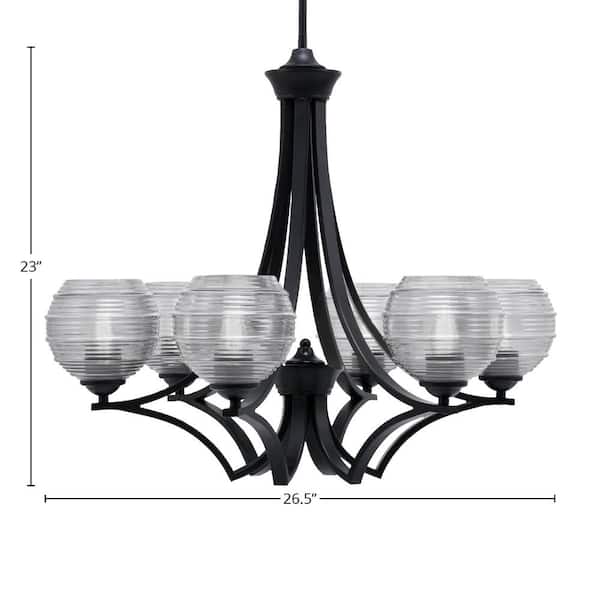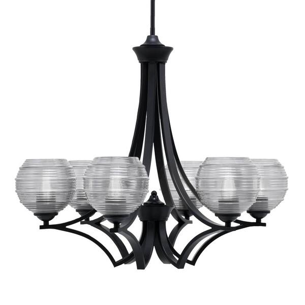 Clevelend 6-Light Matte Black Round Chandelier with 6 in. Clear Ribbed Glass Shades, No bulbs included