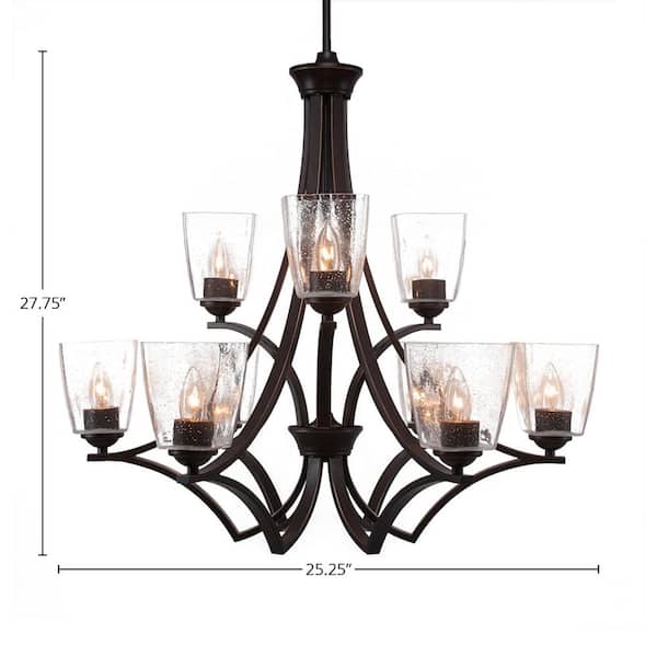 Clevelend 9-Light Dark Granite Chandelier, Round Chandelier with 4.5 in. Clear Bubble Glass Shades, No bulbs included