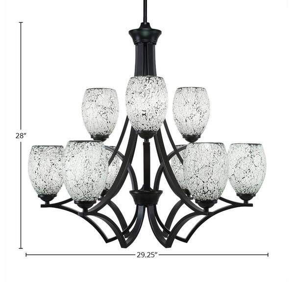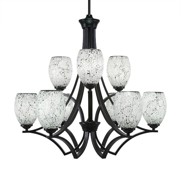 Clevelend 9-Light Matte Black Chandelier, Round Chandelier with 5 in. Black Fusion Glass Shades, No bulbs included