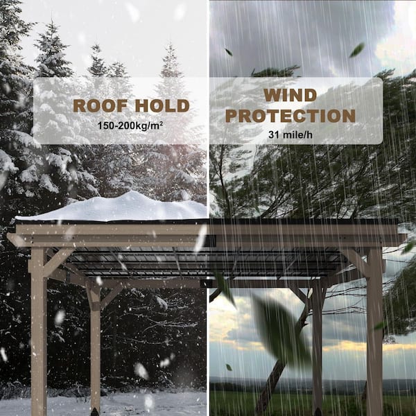 10 ft. x 12 ft. Cedar Wood Hardtop Gazebo with Black Galvanized Steel Roof, Sunshade Shelter for 10-12 People