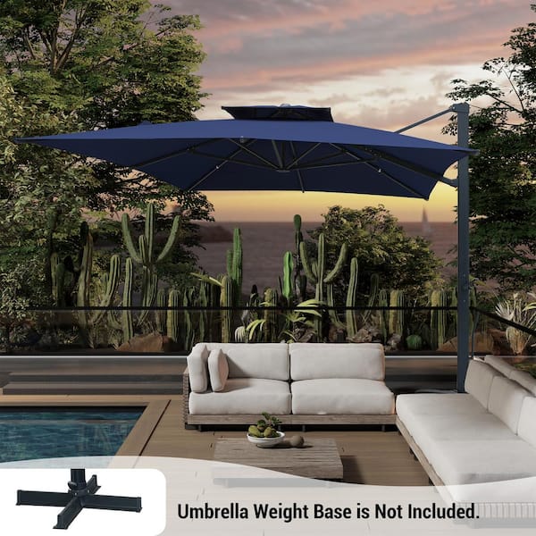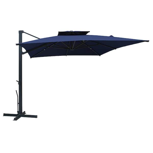 10 ft. x 13 ft. Double Top Cantilever Umbrella Rectangular Crank Market Umbrella Patio Umbrella in Navy Blue