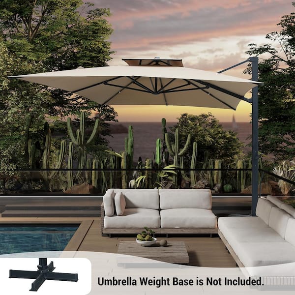 10 ft. x 13 ft. Double Top Cantilever Umbrella Rectangular Crank Market Umbrella Patio Umbrella in Taupe