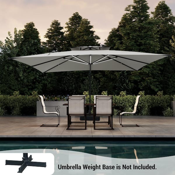 10 ft. x 13 ft. Double Top Cantilever Umbrella with LED Lights Rectangular Crank Market Umbrella Patio Umbrella in Gray