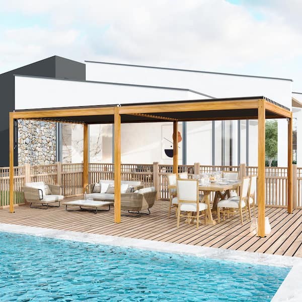 10 ft. x 20 ft. Aluminum Frame Louvered Pergola with Adjustable Roof, Efficient Drainage System in Wood Grain