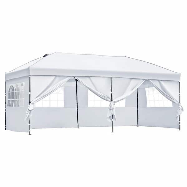 10 ft. x 20 ft. Outdoor Pop Up Canopy Tent Heavy Duty with Wheeled Bag (White)