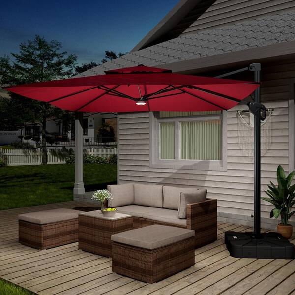 10 x 10 ft. Outdoor Pneumatic Lever Cantilever Umbrella Patio Umbrella in Red w/Bluetooth Speaker, Lighting (With Base)