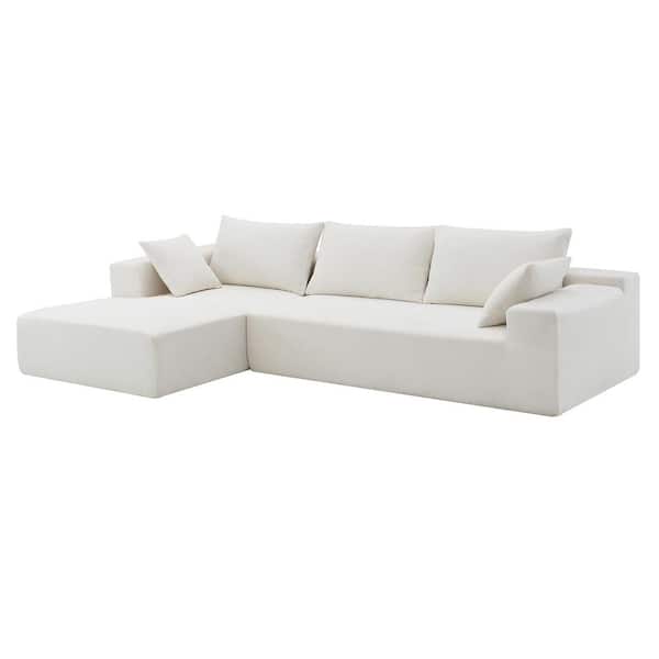 109 in. Chenille Sectional Sofa Set in. Cream for Living Room, Bedroom, Salon