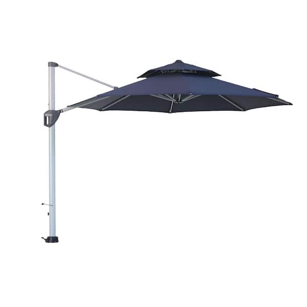 11 ft. Navy Blue Patio Cantilever Octagonal Outdoor Umbrella With Umbrella Cover 360° Rotating Foot Pedal