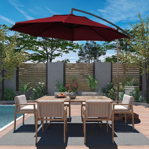 11 ft. Outdoor Cantilever Patio Umbrella 360-degree Rotation Patio Offset Umbrella in Red