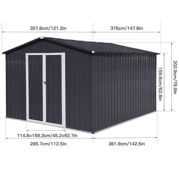 12 ft. W x 10 ft. D Outdoor Metal Storage Shed with Hinged Door and Apex Roof in Dark Grey (120 sq. ft.)