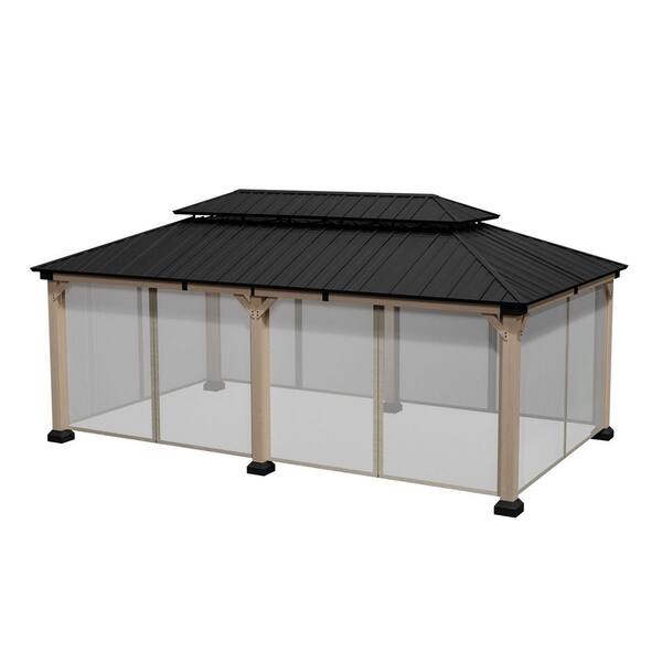 12 ft. x 20 ft. Cedar Solid Wood Frame Galvanized Steel Double Top Gazebo With Mosquito Net