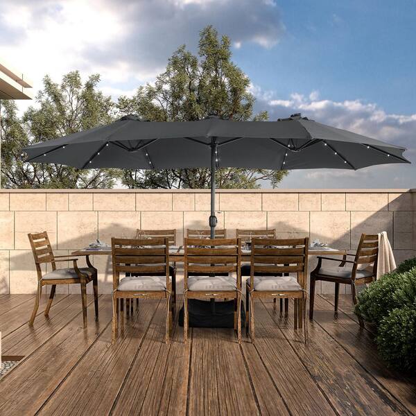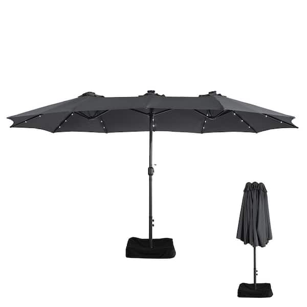 15 ft. Maket Patio Umbrella Outdoor Double-Sided LED Umbrella with Base in Dark Grey